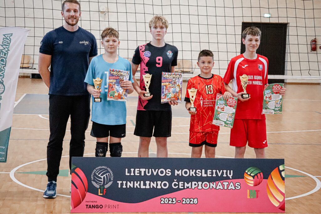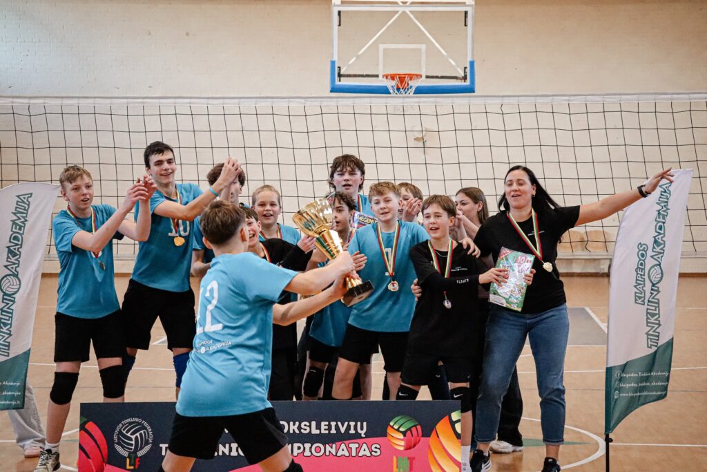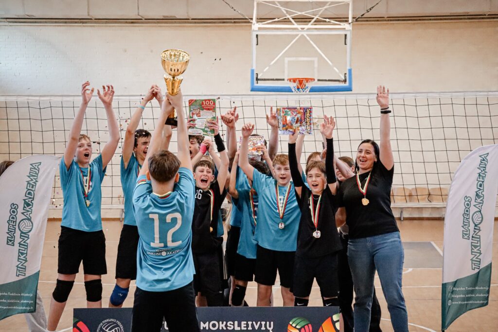 Agnės Tamošauskės auklėtiniai pusfinalyje 2:0 (25:11, 25:14) įveikė bendraamžius iš Nemenčinės (Vilniaus r.), o finale, po įtemptos kovos – 2:1 (22:25, 25:10, 15:12) palaužė Raseinių komandą.