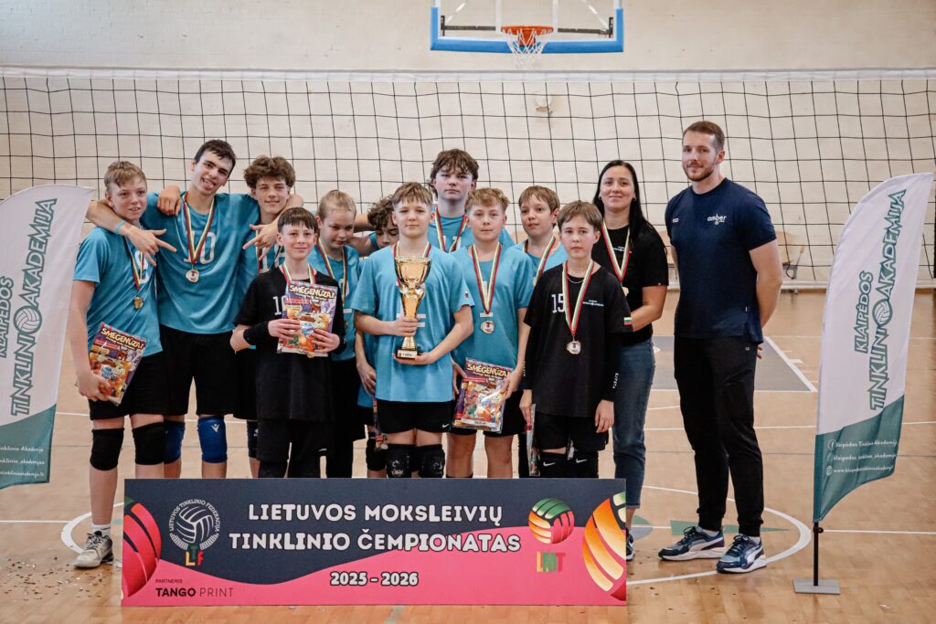 Klaipėdos tinklinio akademijos 14-mečiai berniukai trečius metus iš eilės tapo savo amžiaus grupės Lietuvos čempionais.